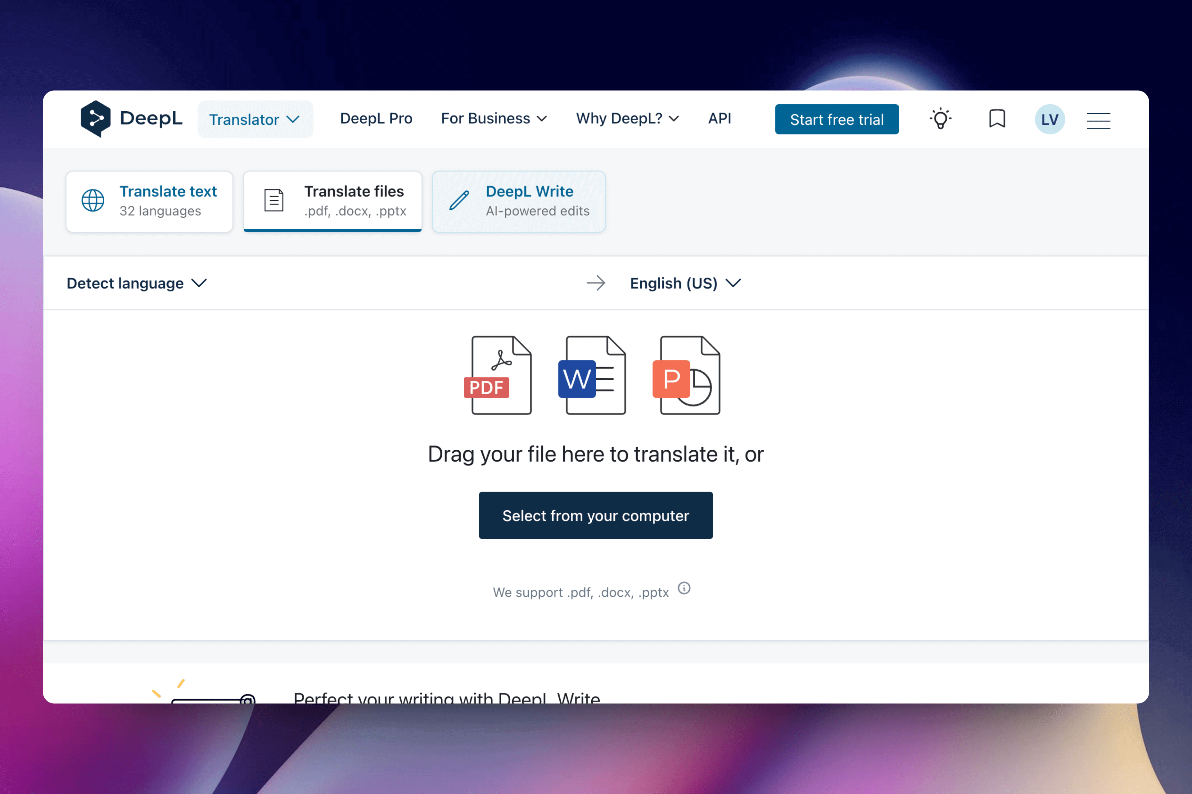 Вот шаги для перевода PDF-файла с помощью DeepL Translate: