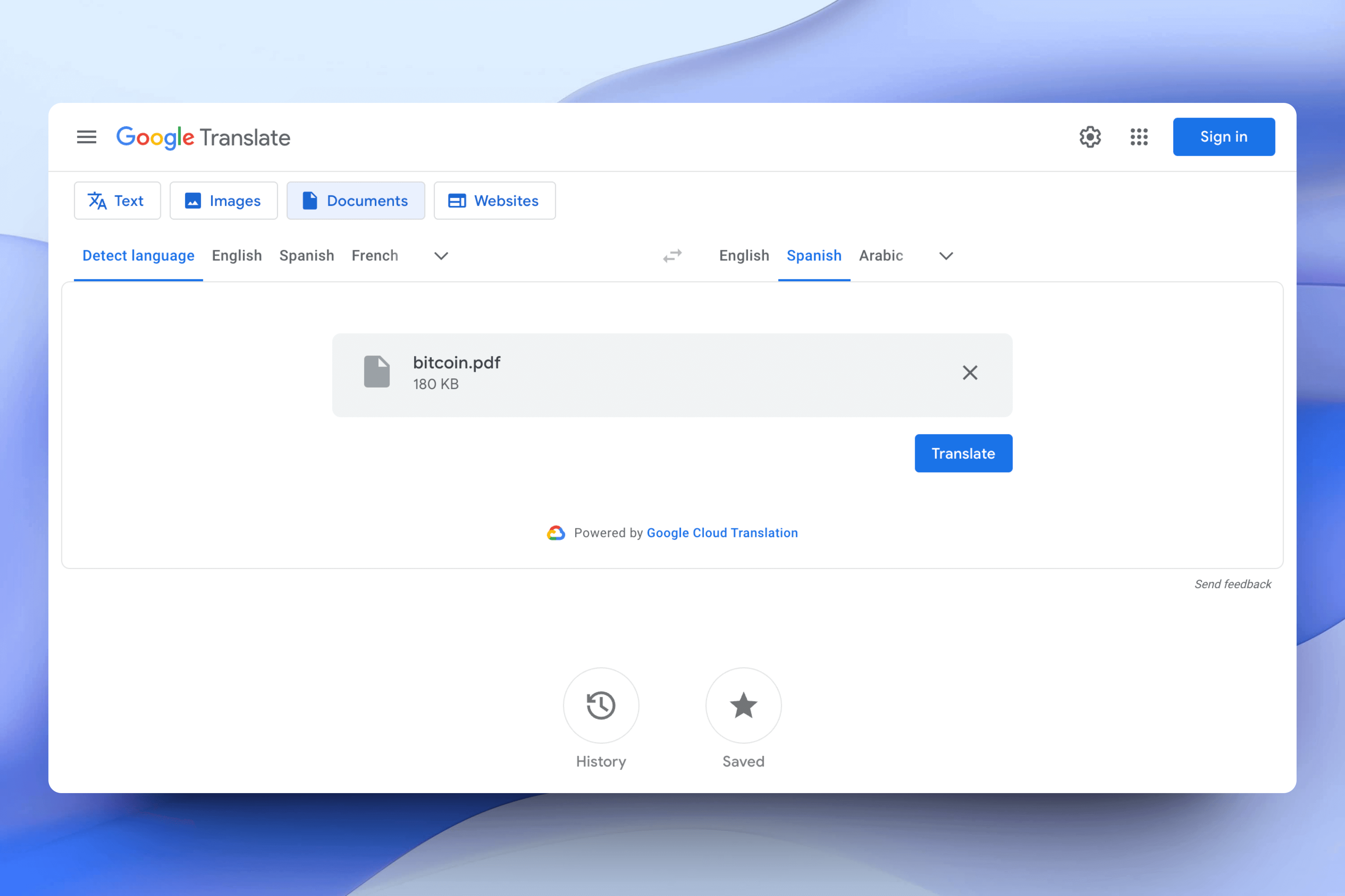 Если вам нужен бесплатный перевод PDF, вы можете использовать Google Translate. Для тех, кто ищет более высокое качество перевода и поддержку большего количества языков, OpenL Translate предлагает точные переводы на основе ИИ, а также поддерживает файлы большего размера. Кроме того, если вам нужно сохранить исходный формат файла и получить высококачественные результаты перевода, DeepL Translate также является отличным выбором.